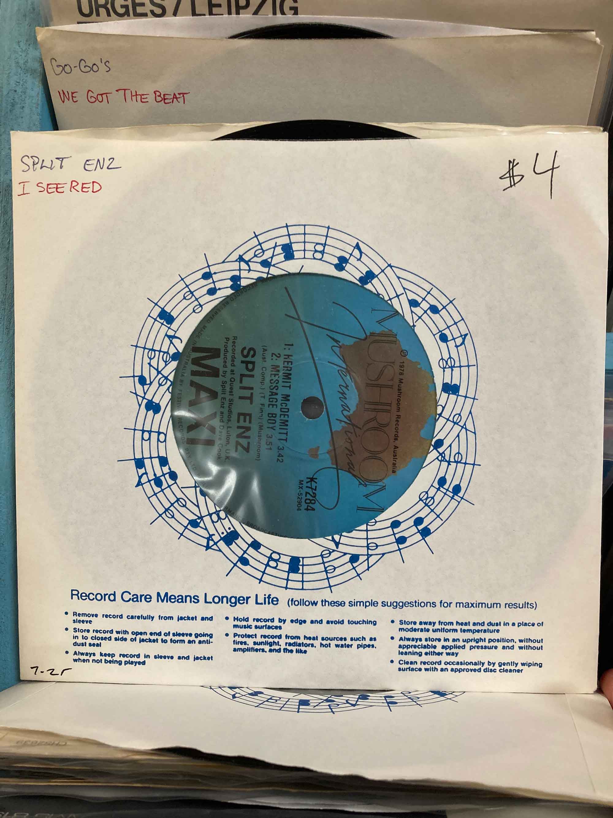 But man does not live by CDs alone. I gave a glance at the 12” records, but there were 99.3% LPs only there, and there are so few LPs I actually want [of titles that don’t exist digitally] I find it hard to remember what title they are. So I looked at the 7” singles and found it to be salted nicely with records of the PPM stripe. Things like “She Loved Like Diamond” by Spandau Ballet. A steal at $3.00! I might have spent three times that much getting my copy 20+ years ago! I liked the Icehouse “We Can Get Together” US picture sleeve 7” that I might not have ever seen, if memory serves. And had I ever seen OZ 7” of Split Enz records outside of Mr. Ware’s Record Lair®??! Certainly not! Check out that “I See Red” single that every home should have!