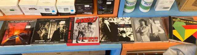 On the shelf above the used bins there was a high value target like few others: the “Stratoplay” box on Cherry Red by The Revillos! A set I had tried to special order last year at Time Traveler only to find it was out of print. And here it was for $25; below the £24.99 retail cost. And then I noticed that the John Foxx “Virgin Years” box was right next to it!! The only time I’d ever seen a copy of that in a store was in Wales!! I didn’t need one but this was obviously a sign from The Gods that things had changed at Harvest Records as I dove into the used bins in earnest.