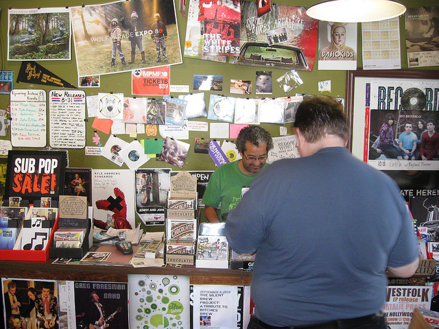 Eventually, it was time to sort through the pulls and figure out what was necessary and what returned to the bins. I thought the better of a pair of It’s Immaterial UK 7″ers, since I’d need the 12″ versions anyway. Charles checked out ahead of me as I was getting some pix of the store at this point.