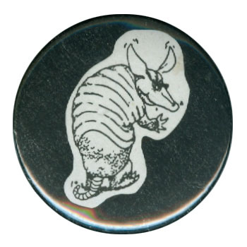 This was the official badge of the late, lamented Crunchy Armadillo Records! Back in the early 80s, my friend Tom was at the scuzzy comics shop we frequented, when he took a careful look at the rest of the slipshod “strip mall” that the shop was nestled near. Much to his surprise, there was a record store there that he investigated. That was Crunchy Armadillo MKI on South Orange Blossom Trail in Orlando. The proprietor was Craig Michaels, whom I knew by reputation as he wrote for Dogfood, Orlando’s free “New Wave” newspaper. I quickly twigged to the fact that Crunchy Armadillo had the cheapest used records in town! And the selection was spectacular! Obscure records I’ve not ever seen again in 30+ years of crate digging were as plentiful as copies of “Saturday Night Fever” at Crunchy Armadillo! And Craig was happy to let you keep a stack of reserve material behind the counter so you could stop in and whittle down your stack without having the discs you wanted enter the Record Cell of a lesser Monk! I could go on and on about Crunchy Armadillo and Craig, but that’s a full topic some day. All hail Arnie Dillo!