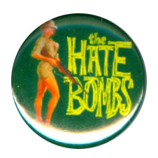 Ah, yes! The Hate Bombs! They were Orlando’s finest garage rock combo and constituted a huge chunk of the 90s for me musically. I must have seen them more than any other band; dozens of times. They were blistering in concert but traditionally, had a difficult time getting it down on wax, natch. Their 45s came a lot closer than their debut album, but even those lacked… something. They finally nailed it on their second and final album, “Hunt You Down,” from where the cover art was repurposed for this badge.