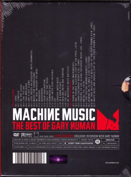 So here we are in 2012, after having studied the latest steaming heap from Ultravox and just yesterday I received a notice from the official Gary Numan store at Townsend Records, that the limited edition 2xDVD I mentioned earlier is now on sale for a limited time only to one and all on the internet. Licensing issues required that Numan produce only 3000 copies for sale, and this was sold at his merch table on his just concluded “Machine Music” tour, so whatever unsold copies that exist are now sitting in the Townsend Records stockroom, but not for long! Numanoids unite! Act right now if you are entertaining the thought of having one of these in your media empire room. Sure, it’s a PAL disc. Just deal with it.