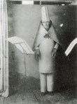 That’s not to say that Der Plan were buffoons. They employed an almost child-like theatricality and artistry in a fashion similar to techniques used earlier by The Residents [or DEVO] and descended from pioneers of Dada like Hugo Ball [left] who confronted the horror of World War One with an artistic abandonment of reason, which had led to this technological slaughter. Not having a full grasp of German probably works against me in listening to Der Plan but fortunately, the winsome melodies of the largely music the band dubbed “synthi-pop” overcomes any shortcomings that missing much of the lyrics engenders. Still, I get the feeling that I’m missing out on the NDW equivalent of Altered Images with bouncy music paired with intellectually incongruous lyrical content. The persistent left field nature of many of the songs, in spite of their exuberant catchiness, suggests that this may be so.