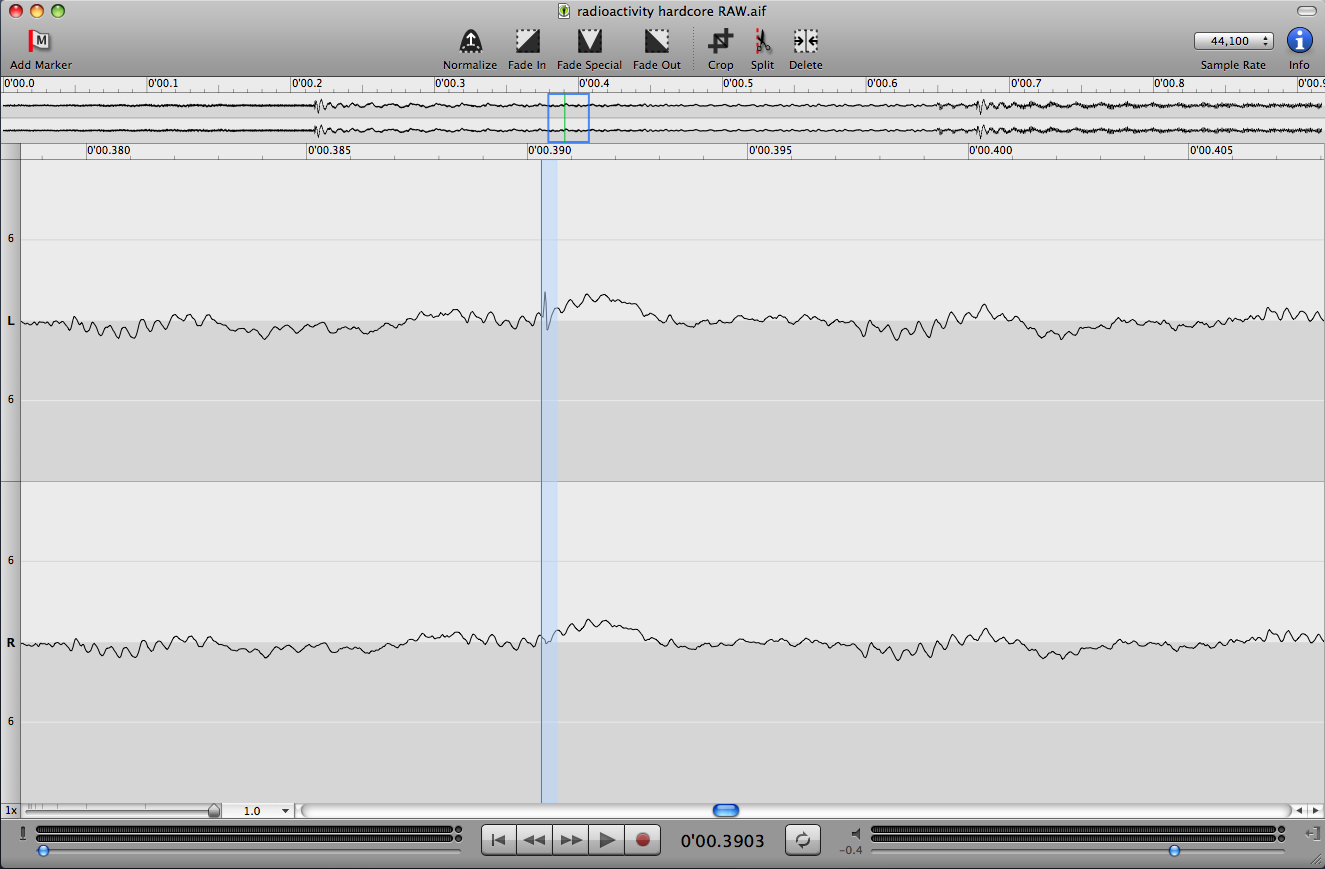 Play the RAW file to hear a second of Kraftwerk’s “Radioactivity [William Orbit hardcore mix].”