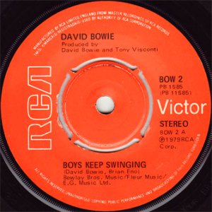 Yesterday, I touched on a topic I’ve always wanted to write about. David Bowie and Billy MacKenzie are two of my favorite singers and there have always been “connections” between them. Billy ended up singing many songs that were associated [sorry!] with Bowie throughout his career. It goes without saying that Bowie was an influence on the mercurial singer of The Associates. It goes right back to the band’s first, self-released record, which was a grey market cover of Bowie’s own “Boy’s Keep Swinging.” First, the Bowie record.