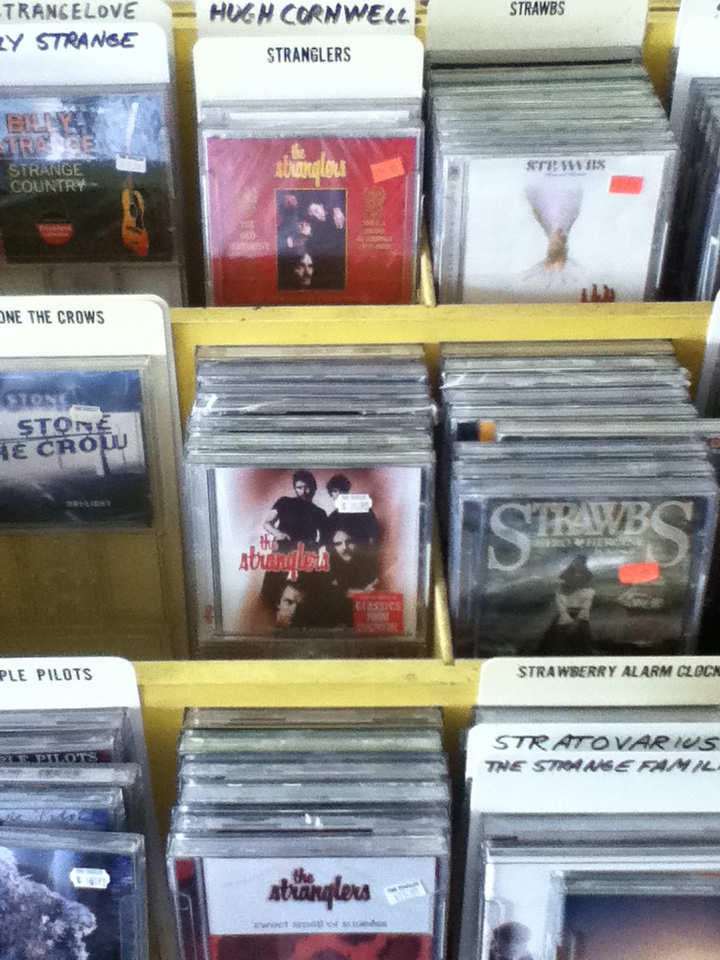 For an example of good taste, look no further than the Stranglers section. It’s more than just hits compilations; it’s fat with releases from the band’s nearly 40 years of history – even including the post 1990 stuff I ignore! That there’s an almost as thick Strawbs section right next to it speaks volumes. This is a store that caters to esoteric tastes. I managed this day to find an insanely rare Lilac time promo only 12″ for “American Eyes” called “Welcome To Hell… Here’s Your Accordian.” This little gem was something that I had to track down on the internet for years and pay dearly for after a search of several years. This visit, I managed to find the only copy of this out in the wilds I’ve ever seen. Naturally, I got snatched up since my good friend Ron Kane also collects Stephen Duffy and sending a copy of this beauty will only begin to address the karmic balance for all of the amazing things he’s sent me over the years I’ve known him.