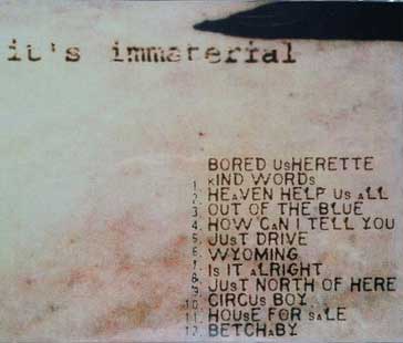 Given that 69% of the goal has been met in as few as eleven days, I hope it’s safe to say the the long awaited third It’s Immaterial album will manifest in time for Christmas! Thus far, only teaser images have appeared, but I fully expect the final art to be quite different from the image at left. As for the track listing, nothing has been released yet, but the archaeologists amongst you miiiiiiiight remember a CD of dubious provenance back in 2001 of an album with this title attributed to It’s Immaterial. It’s difficult to say whether the CD was a band-member-issued artifact or a bit of leaked larceny, but the cover and track listing from that disc is below.