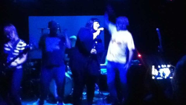 By 10 p.m. Cindy Wilson’s new five piece band were coming onstage to a video projector backdrop. Her new band was completely different to the B-52s. They were a five piece with synth/violinist. Their talented guitarist also doubled on synth occasionally. The vibe they proffered was a bit like New Order meets Tom Tom Club with a dash of dub. Two songs were instros with Cindy manipulating her expression vocals in dub space with an effects box. It was a little trippy, especially with the videos projected behind the stage. Some of the songs from her two new EPs were hazy psychedelic dreamfests. Others were alternative dance rock which is where the New Order comparison came in; but more laid back.