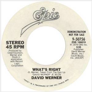 In 1979 I was still listening to FM Rock. I had started the previous year and while the preponderance of nascent Classic Rock [just as it was fully calcified and ready to spread like a virus across the FM airwaves] was a downer, there was still a few glimmers poking through all the Led Zep/Who/Stones. After all, I had first heard Talking Heads “Take Me To The River” in this context. My own Record Cell was only barely seeded, much less grown to maturity in 1979. I had just gotten had my first stereo since the previous year, so radio was still a valid, if increasingly marginalized, form of entertainment. By 1981 I was done with it, but not before I was exposed in 1979 to David Werner.