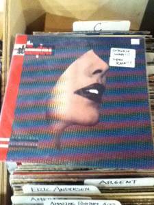 There was a bin of new LPs that, as usual, I ignored. Instead, I pawed through the used vinyl, where anything that would catch my eye would be hidden. It became very apparent that this was some really tired record stock that had been around the block several times on its march through history from the mid-70s through to today. Take another look at that Strangler’s pic above. Do you see the Argent artist tab? Who, under the age of 50 today, even recognizes the name of Rod Argent??! Or more importantly, cares?