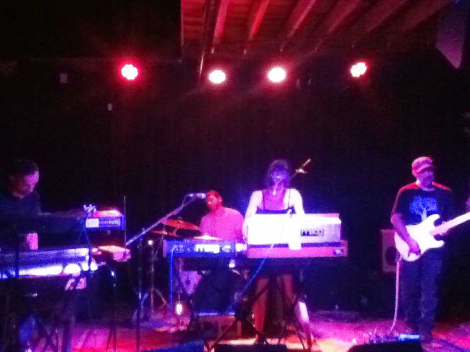 By midnight, they began their set with a pair of incandescent bulbs on stalks with rheostats lighting the stage warmly. The synth gave a pulse to synch with the drums while the three guitars wove a web of sound. Rhythmically it was complex and percussive but the guitars sounded sweet and harmonious, sort of like Allman Brothers gone Krautrock. The gent who was half of Orbitroid who had played with every band this evening was once again playing shakers. Around 12:30 I got the sense that this band were playing the longest set, and since I had to rise at 5:00 a.m.to work the next day, I took my leave having gotten quite a variety of fine sounds for my $5.00 cover. I was not dead on my feet, but I was determined to get more than four hours of sleep before a day’s work.