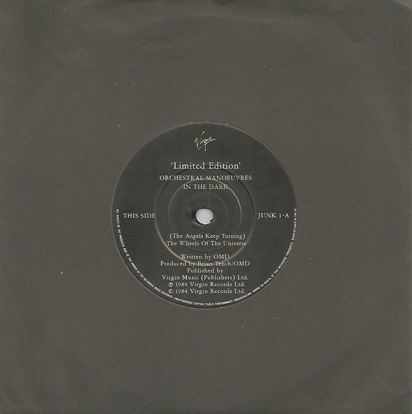 Finally, to cap this compilation, they pulled out something that had been too long hidden in the OMD tape closet for the digital era. “(The Angels Keep Turning) The Wheels Of The Universe” was a bonus 7″ included only in the first UK LP pressing of “Junk Culture” but its origins were obviously in the experimental path they were investigating around the time of “Dazzle Ships” and subsequently abandoned when that album failed in the marketplace. This was a ponderous instrumental of lurching menace and sampled choral voices that sounded like a malevolent machine where the tracks eventually dropped out to reveal a serpentine rhythm box abetted with militaristic snare fills. At its conclusion, it ran out of fuel as the track ground down to a painful halt. I was most gratified to see this included here, since in all truth, it should have been a bonus track on the “Junk Culture” CD upon its release. The compilers showed great attention to detail in putting it as the final track.