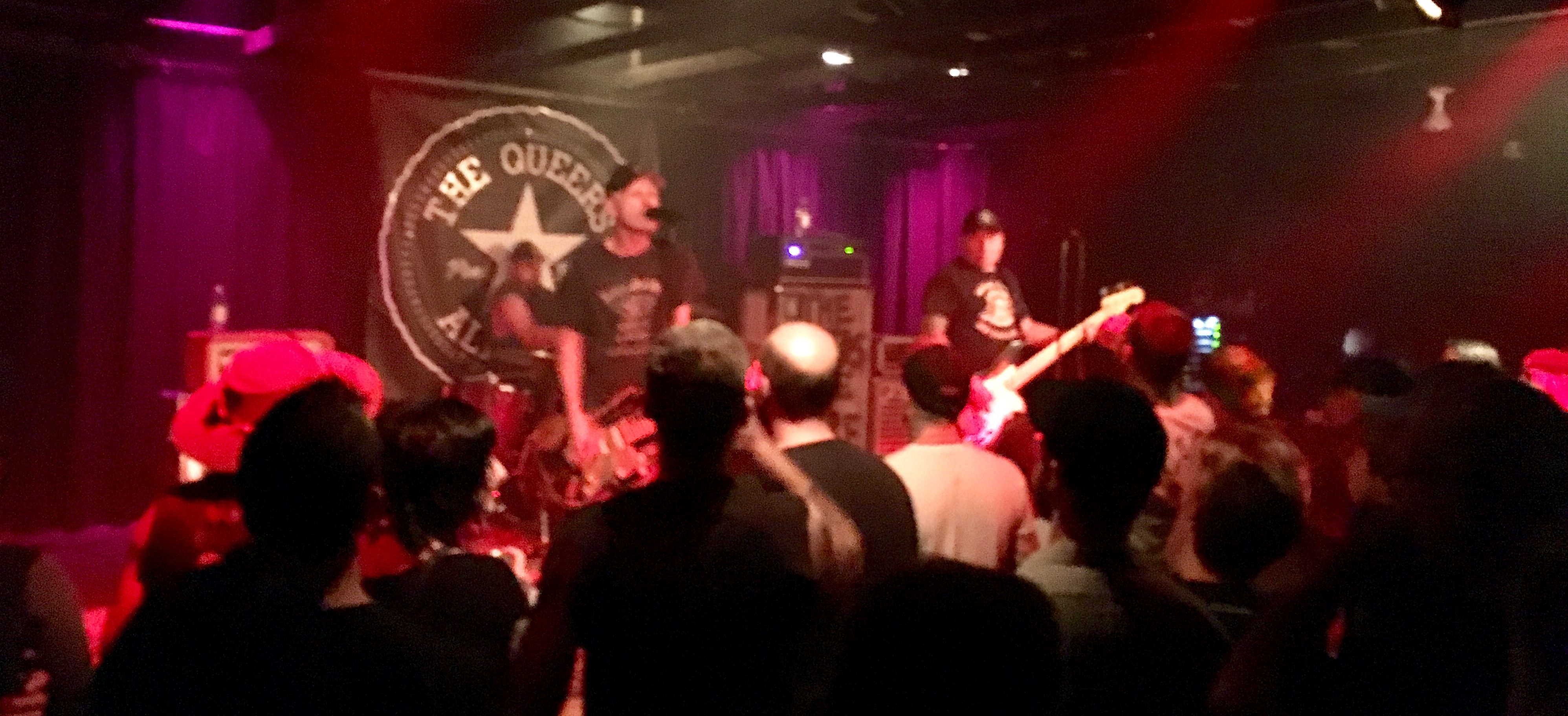 We remained outside chatting as Stan Lee of The Dickies came by and was greeted by some fans wanting photos with him, which he obliged. We saw he was checking his phone for messages, so we left him alone. Then we heard The Queers kick off and we thought that this was when the fun began, so we made a bee-line to the stage and the rapid fire tuneage of The Queers. I remember hearing them in the 90s on college radio, and I had no idea that they had begun as early as 1982, making their origins in line with the hardcore movement; though their strong use of melody would keep them apart from the sheer loud/last/rules crowd. Unlike the kranked up mayhem of the first opener, the sound for The Queers was perfect! The songs were loud [without being painfully so], fast, and clear as a bell. There was a mosh pit at the front of the room but the floor was roomy enough for us old timers to scoot back a little. I can’t remember the last time I attended a show with a most pit but it had to have happened in the 90s. Definitely not since I had moved from Central Florida to Asheville.