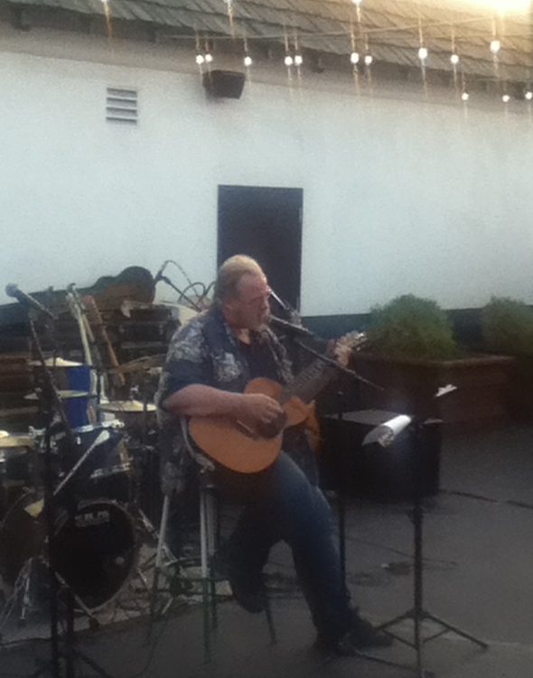 After we arrived at Brennan’s [once we figured out where to park] we began setting up the gear. It didn’t take too long to do. The pub had a lawn area outside where people were already playing bocce ball in the fairly comfortable late afternoon weather. Chasinvictoria, Mr. Ware, and I retreated to the inside of the pub to secure dinner while The Wayfarers, the first band playing, were sound checking. This band had roots going back over 30 years in L.A. and their guitarist and drummer, Cary Berger and Jim McGrath, were also in the Record Man Orchestra, so the crossover was there.