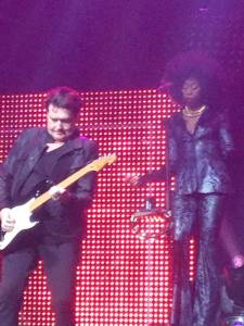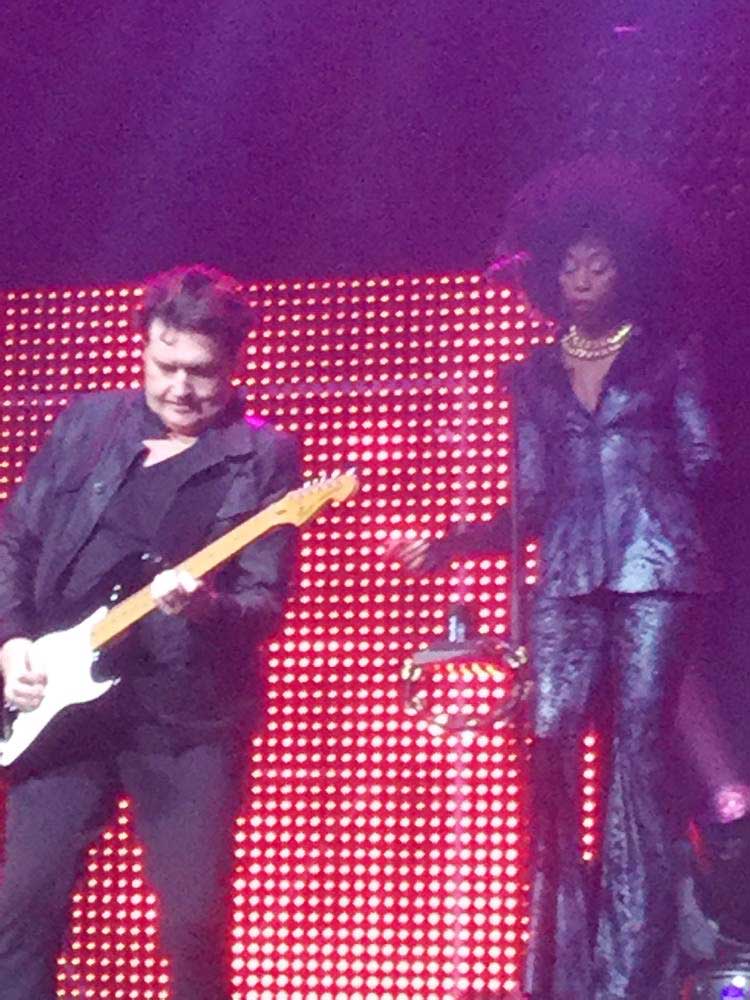 From that nice surprise, the band worked their way backward, skipping the troubling middle 80s period of the band for something that built on the platform that “Let There Be Love” provided and took the energy higher. Much higher. Good gravy, it’s hard to believe, but I have never heard this band lay into the propulsive “Up On The Catwalk” live before! Until this evening! They really scored a goal with this one! This gave Ms. Osei a change to really work out the chunky rhythms so crucial to the song’s success.