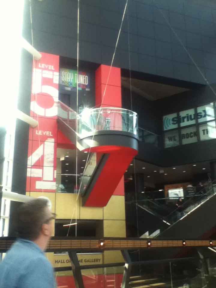 The interior of the pyramid is largely open. Hmm, would we find King Crimson on Level 5? We ascended to the inductee level to see the Roxy Music portion of the exhibit. The main draw for visiting today.