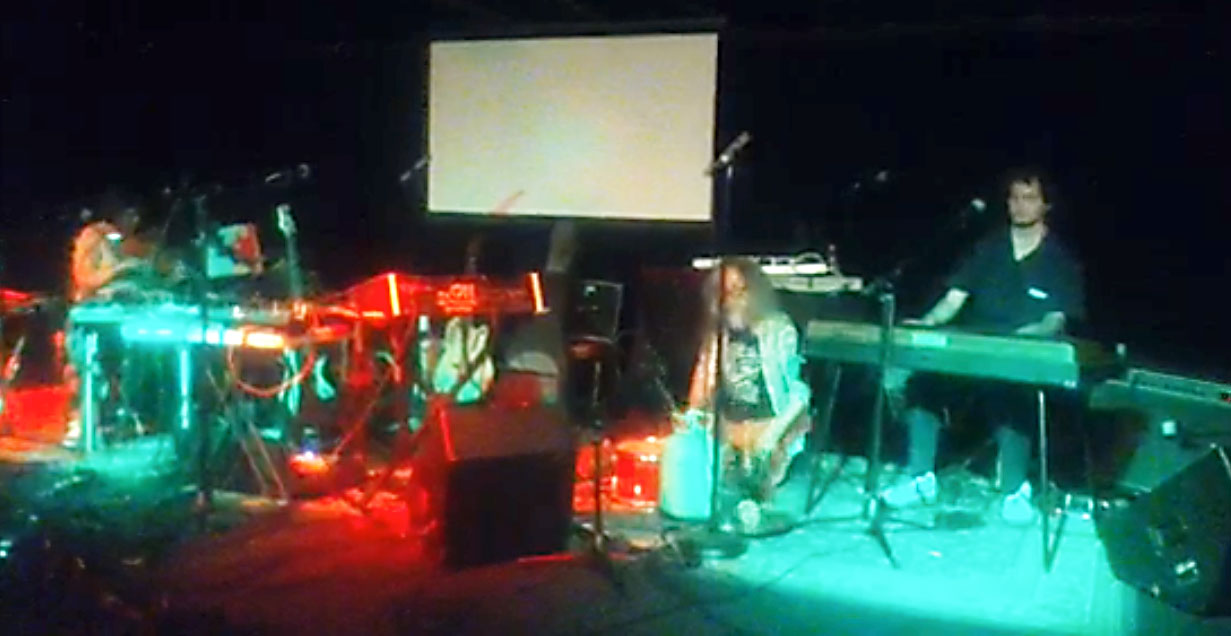 Soon the music was diverging dramatically when Ms. Ocher began using the two Korg synths up front to take the music into a unique tribal/synth territory. The twin drummers generated serious motorik energy as she alternated between synths and her guitar to accompany her singing, where the melodies were front and center on the vocal material. Throughout the performance, she also paid attention to her staging and presentation, not just with her projection backgrounds, but also with her gestures and stances.
