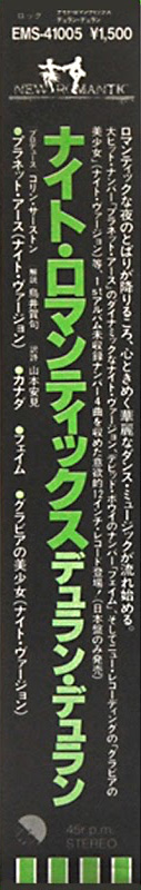 Back in 81, I was already a Japan fan, traveling with the band through their Anglo-Glam NY Dolls phase and into their still undefined move towards the a more emotive, “romantic” sound. Duran Duran came along and seemed like some even younger kids (I believe they were, even if by just a couple years) mirroring Japan, but at the same time, taking things in a more brightly colored and slick fashion. It took only a little time to see/hear the differences in the two bands and decide they both had their place at the New Pop table. That debut album is packed with so many great tracks. But when the Night Versions started making their way to my ears, it was a revelation. They built their own cache, their own atmosphere, making them a bit like a secret revealed. The fact that they were flooded onto a hungry market, but still seemed somehow special speaks to the power of the versions. My friends and I traded mixtapes that always included the Night Versions from the first two albums over the album or extended mixes.