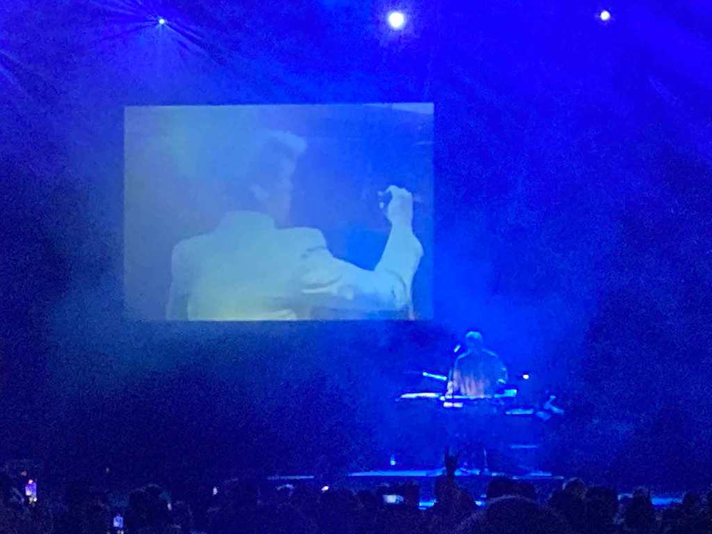 The the second cover version of the evening manifested but the connection to this one were well established. At first it began as a video and photo collage with Dolby recounting the day he played music director for David Bowie at Live Aid. But as the video continued and it showed Bowie taking to the stage after arriving at the site by helicopter, Dolby began re-creating his arrangement of “Heroes” from that day, building up his loops in Logic as the video of Bowie had his isolated vocal singing the lead while Dolby played; now in silence. Super classy, and a fascinating glimpse at the Live Aid event which I actually abandoned watching very early on.