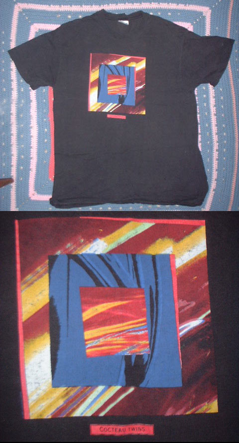 As I was seeing Cocteau Twins after six years of fervent fandom, I went a little hog wild at the merch table on tour shirts. The clear winner was the blue shirt in part 3 of this thread, but I also got this black shirt with an abstract framing of the colored lights that were part of the album artwork.