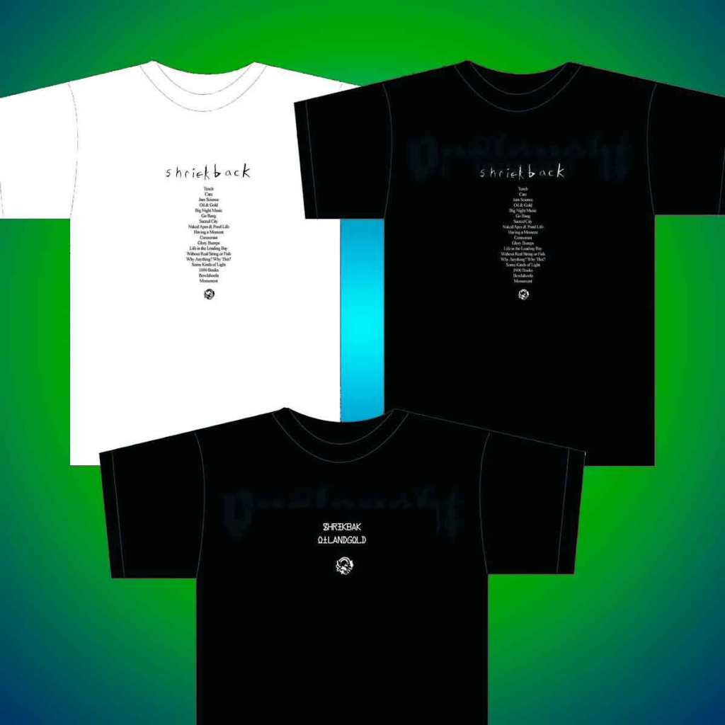 The band have T-shirt designs on your wallet as well. The “Canon” shirt lists all 18 albums with the distinctive Shrieklogo by John Warwicker of Tomato. Available only in black or white for these polarized times. The one that caught the Monastic eye, was the “Oil + Gold” design, also with the Shrieklogo but featuring the band name and “Oil + Gold” in the distinctive Unifon D phoneticfont as seen in the original inner sleeve to “Oil + Gold.” Purrrrrr…! Any of these is £23.00 [insert stinger] but I’m sure that’s just a coincidence. In L/XL only, so no children, sorry! Bundle of three for a discount at £60.00. DJs hit those buttons.