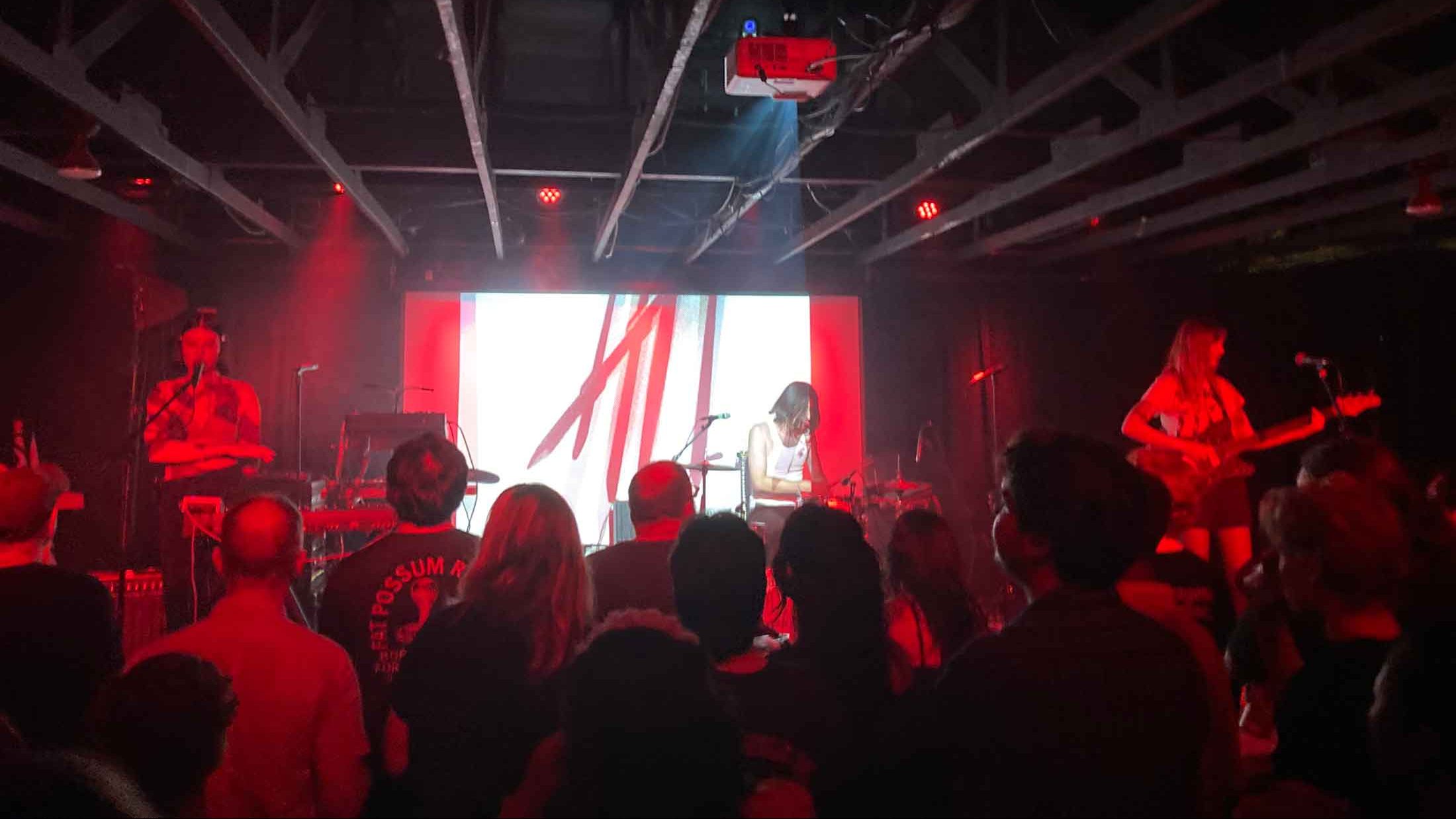 As the set pulsated like a piston throughout its run time, the appearance of Izzy Glaudini for her turn at the mic added a necessary pause in the set of short, sharp, salvos of intense dance floor dynamite for a breather before the final leg. The song she wrote with the band, “Hospital,” met Automatic more than halfway. It had none of the hard clubbing intensity of the Sextile set thus far and functioned fully as an Automatic song. Then afterward, Brady and Melissa took turns in pushing the envelope a little bit further towards ecstatic overdrive in its final leg. The new song “Resist” climaxed the set and seemed to be cut from the cloth that the suit of 2025 requires. Ms. Scaduto brought a flag onstage with the motto “no one is free until everyone is free.” A plea for the solidarity we’ll need if we’re ever to extricate ourselves from the mess we’re in. Then the set ended with a bang followed by the lights within a minute because this was not Rock Music. At that point a traditional encore would have been untenable.