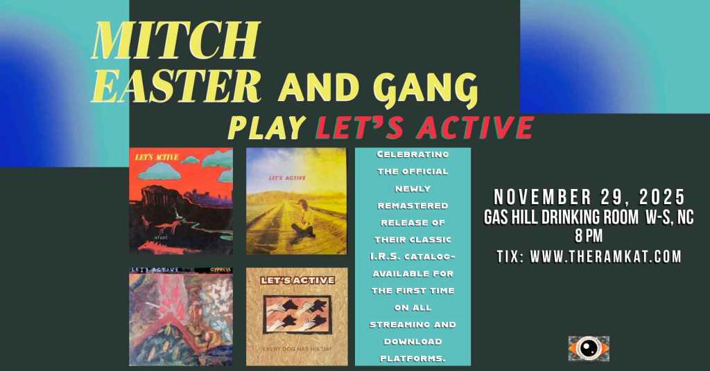I quickly searched and found that Mitch Easter was dusting off the Let’s Active catalog for the first time since the 40th anniversary shows in 2021. Had we not been in a pandemic, I would have definitely attended that show. But it did not happen. Now the occasion is the debut of the Let’s Active catalog to the streaming and download worlds. Since I have the CDs, and I don’t stream, so I was not aware! A glance at iTunes currently reveals only a handful of Let’s Active singles to tide fans over! So this is a good thing for fans of the magical Mitch Easter sound. Presumably, this will be done and dusted with the tunes flowing by the time of the special concert event to be held in the Gas Hill Drinking Room in Winston-Salem on November 29th.