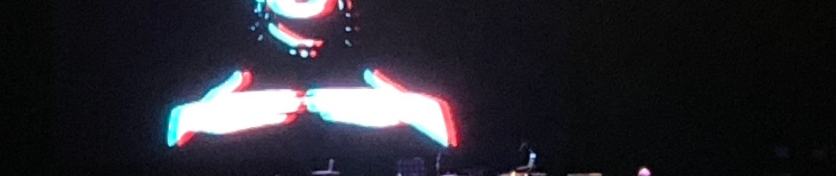 Instead I turned my attention to the DEVO shirts. There were lots of Aztec Energy Dome designs, and the classic white DEVO on black tee design that they famously wore on their Saturday Night Live appearance. There was also one with a still from the “Whip It” video that was iconic. But my gaze was transfixed by the long sleeved red tee with the circular DEVO logo on one sleeve with the legend “FREEDOM OF CHOICE” in black block letters with smaller letters between saying “FIGHT THE POWER.” That seemed like a message for our times so I paid the $50, which seemed to be a [relatively] great price for a long-sleeved t-shirt. Which I needed because my long-sleeved tees were getting fewer in number over the years as they are rare birds. Later as the show ended and we were leaving the venue, I notice that the “FIGHT THE POWER” lettering on the shirt might have been mixed with Scotchlite® material…and it was!