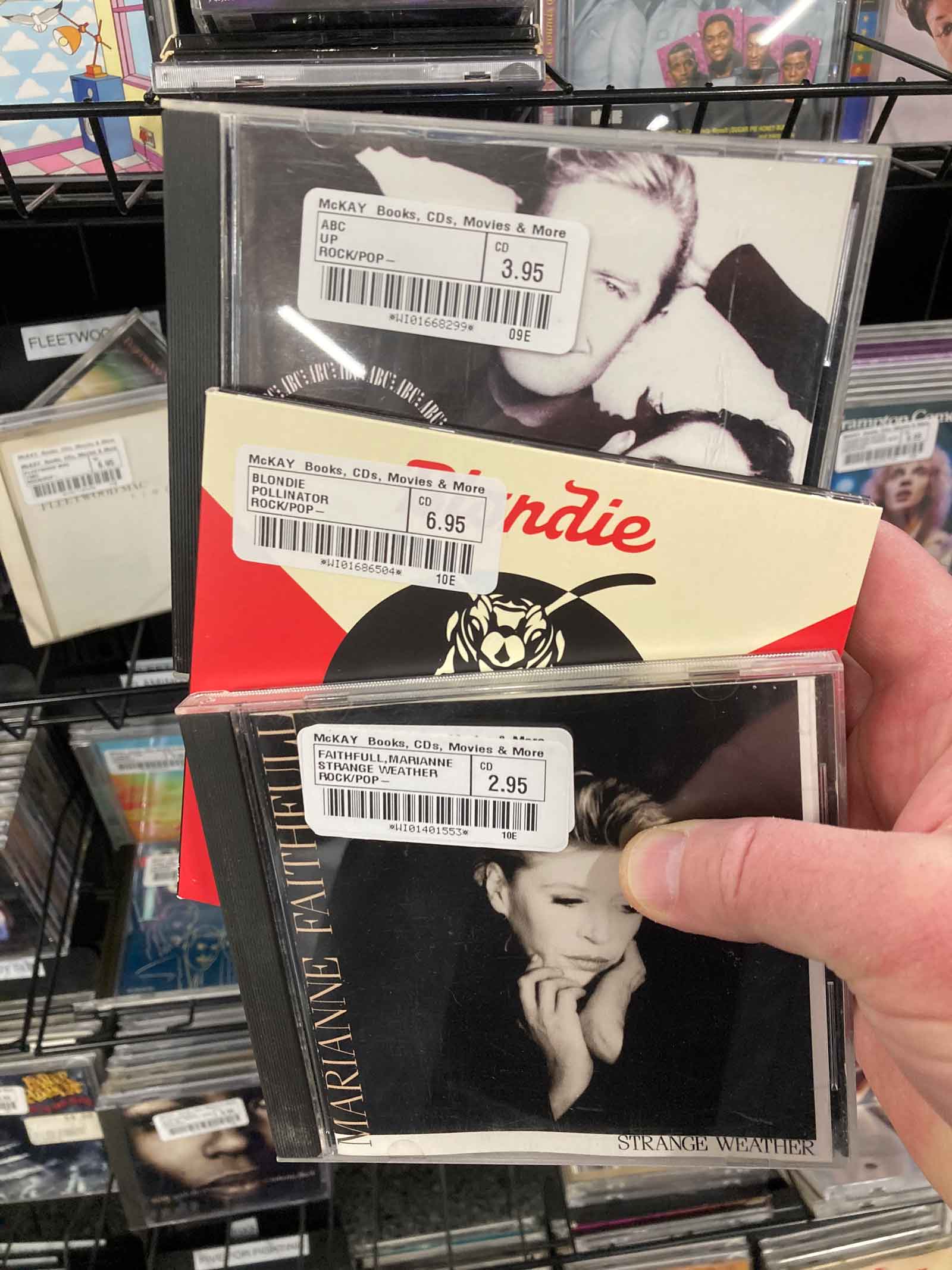 Then a trawl through the Blondie section showed a used copy of “Pollinator!” That was an album I almost bought new the weekend of release but demurred on and regretted the action ever since. I can’t remember ever seeing a used copy and even new copies I’ve not seen in a few years. It was mine for $6.95. Scuttlebutt on the Blondie fan underground suggested this was the pick of the highly variable reformation era albums.